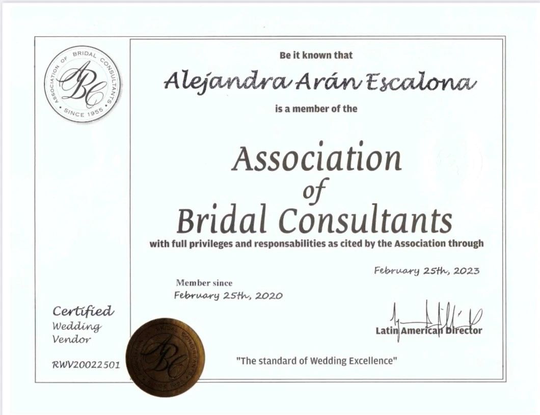 Miembro de la Asociación Pionera en la Industria de Bodas, Eventos y Turismo de Romance, a Nivel Mundial ABC